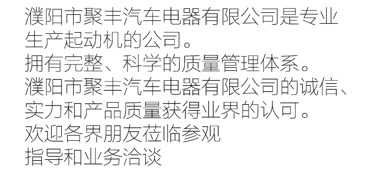 汽車起動機-減速起動機-起動機生產(chǎn)廠家-濮陽市聚豐汽車電器有限公司